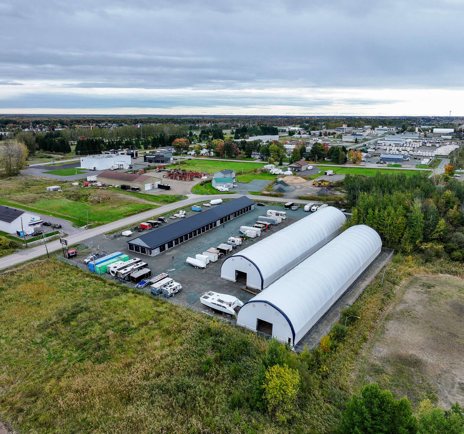 L’entreposage sous dôme combine les avantages de l’entreposage intérieur et extérieur. Ces structures permettent une grande flexibilité pour les biens nécessitant une protection partielle contre les intempéries tout en offrant un accès aisé. Nous possédons 2 dômes de 50 x 240 pieds, parfait pour les équipements industriels, les véhicules de grande taille et les matériaux sensibles.